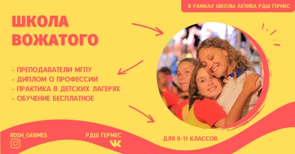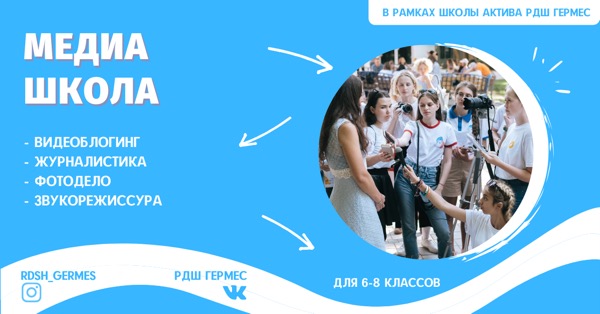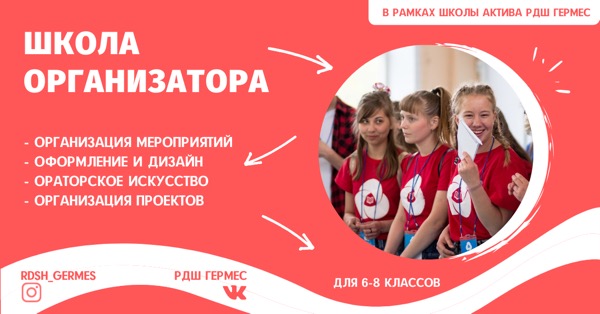 Центр творчества «Гермес» является опорной площадкой Российского движения школьников (РДШ) и приглашает ребят 6-11 классов в Школу Актива РДШ «Гермес»!